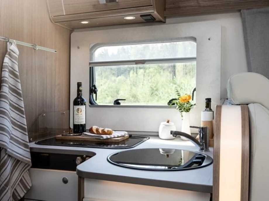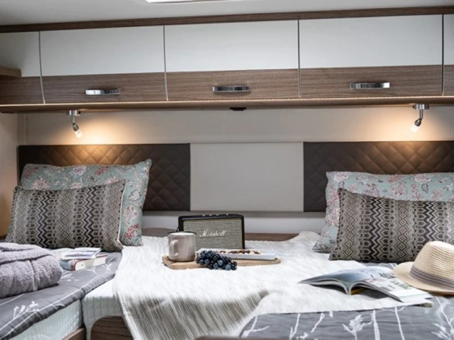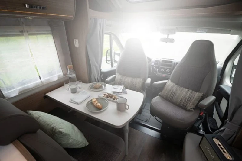 It’s not all about size, however, as the T Series is known for its great looks and all-round quality. Low-profile design and an exquisite contemporary interior give the 447 a distinctly exclusive feel. Sleeping up to five in comfort, it boasts every amenity modern travellers expect, from a fully-equipped L-shaped kitchen to the excellent shower and washroom.