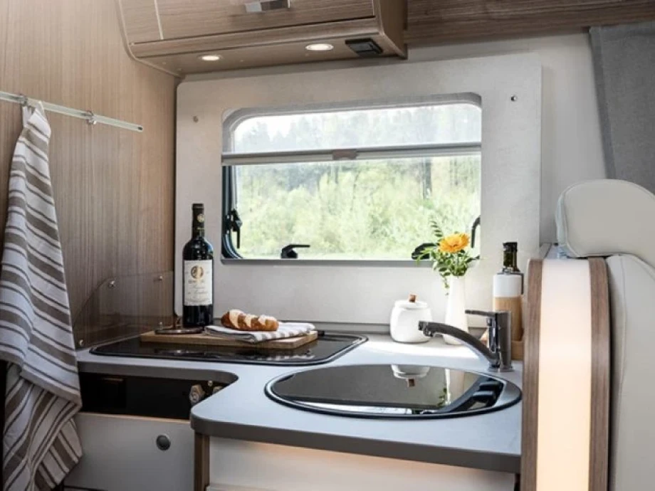 The overall layout is a proven winner, with front seats swivelling to create a congenial atmosphere round the dining table. At the rear there’s a luxurious island bed which sits over a generous and easily-accessed garage space. Kitchen and washroom facilities all are up to the exacting standards associated with the T Series. Accommodating up to five, this sleek, low-profile vehicle is a natural winner.