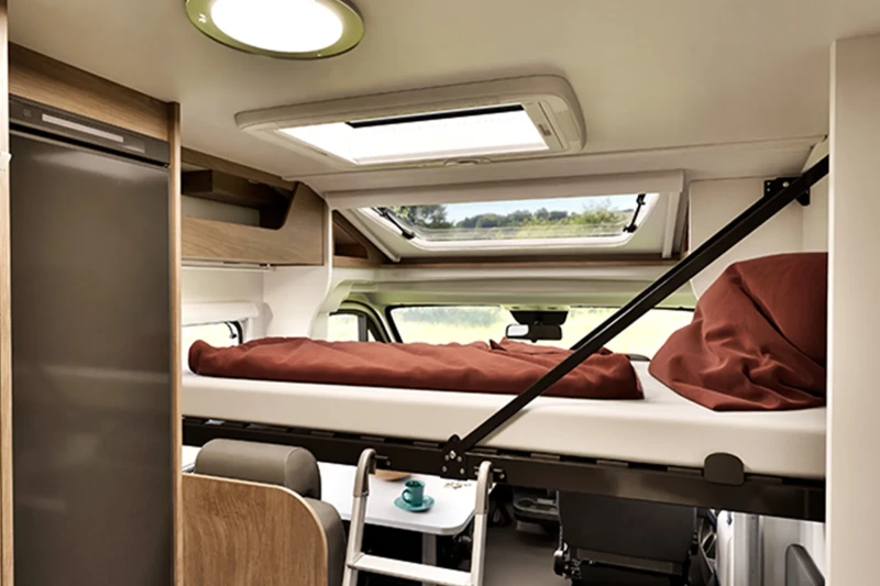 The V347 stands out with its innovative Clever-Lift bed option and a flexible floor plan that adapts to different travelling needs. It combines smart layout design with a functional kitchen, roomy storage and comfortable sleeping areas for up to four people.