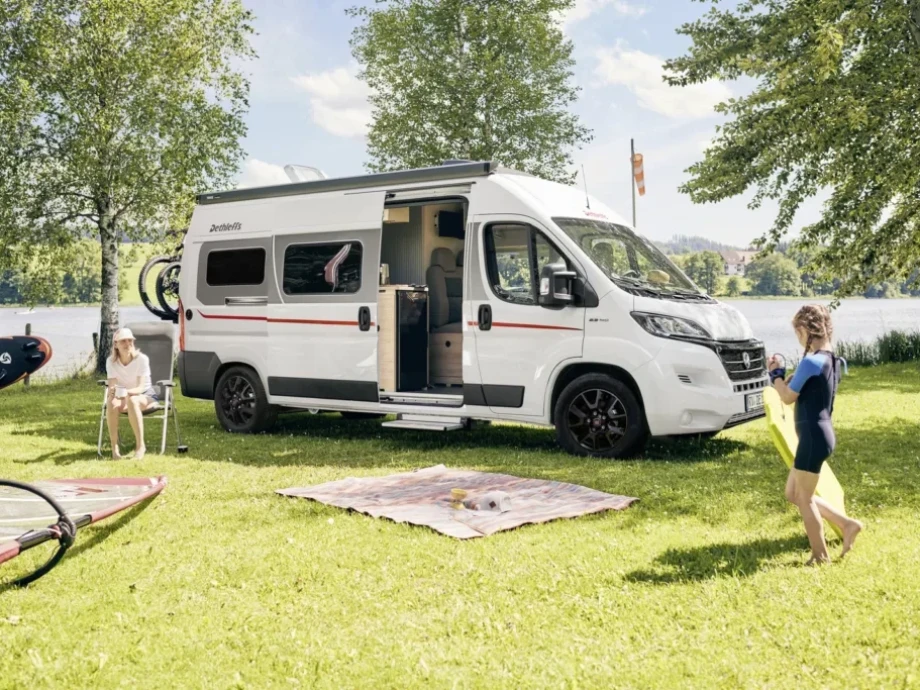 The Dethleffs Globetrail 540 DR camper van offers up to five berths and an optional additional guest bed, making it a fantastic choice for extended family holidays and short stays alike. There’s also the choice between an ergonomic kitchen arrangement or an unobstructed line of sight in the living room, allowing you to choose the perfect arrangement to suit your family’s movement and preferences.