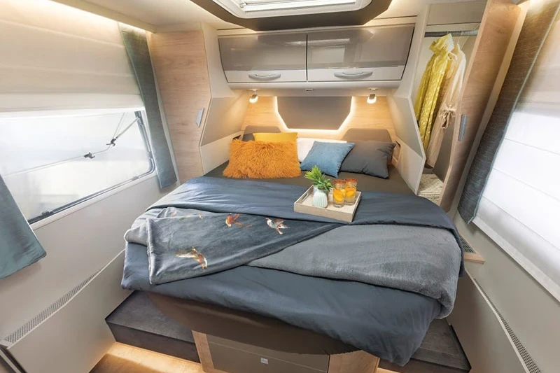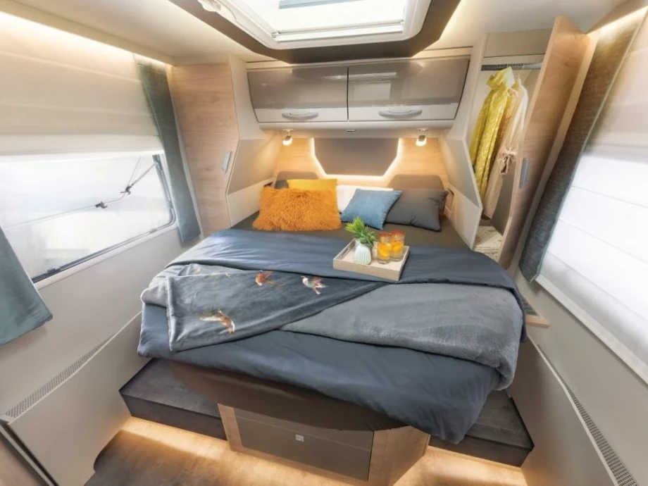 Internally, the extraordinary quality of workmanship and wealth of great features are classic signatures of iconic German motorhome brand Dethleffs, leading the way in family-friendly models for more than 90 years. Accommodating four in total comfort, this mighty travel companion offers copious space, light, comfort and security. So stop dreaming and get on board!