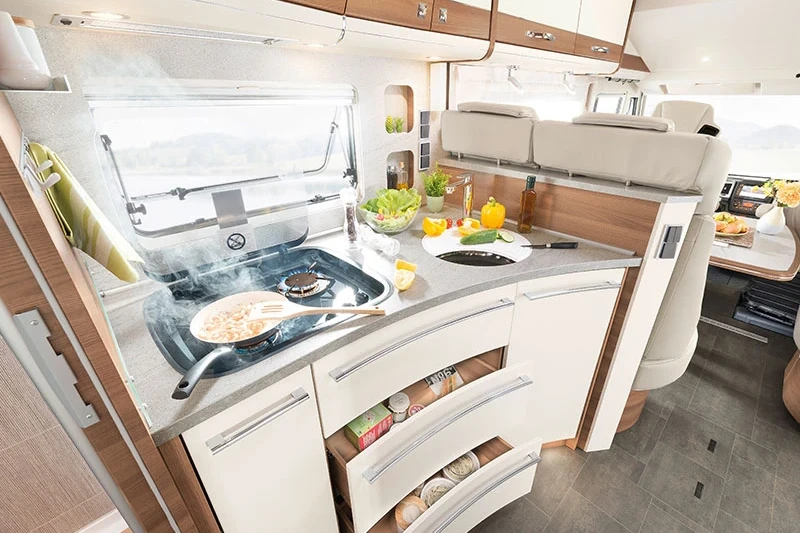 First and foremost, these motorhomes are a joy to drive with their sporty design and premium broad-gauge, low-frame chassis. The interior space combines spacious living with contemporary elegance and cutting-edge design. The upholstery on this Globetrotter series is both chic and practical – and the superb equipment package can be further enhanced with a choice of options.