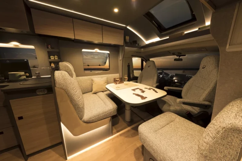 With its voluminous rear garage, you can bring all your sports gear and other kit along, while inside the main body the ambient lighting and quality décor makes for a most enjoyable and relaxing break. Sleeping up to four with ease, this is one versatile vehicle, packed with great facilities for eating, washing and socialising too.
