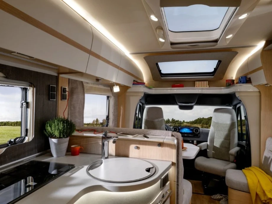 Built to cruise in maximum style and comfort, the T 780 model exudes class with its low-noise engine and delightfully-appointed interior. It offers multiple assistance systems, both as standard and optional, while the flat and spacious double floor design ensures there’s room enough for all your home comforts. Twin beds, generous bathroom facilities and a feature-packed kitchen make this a truly stand-out model.