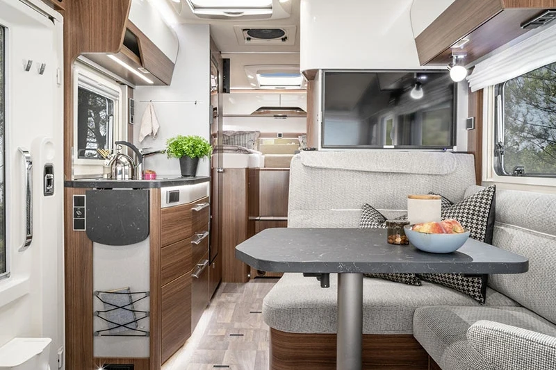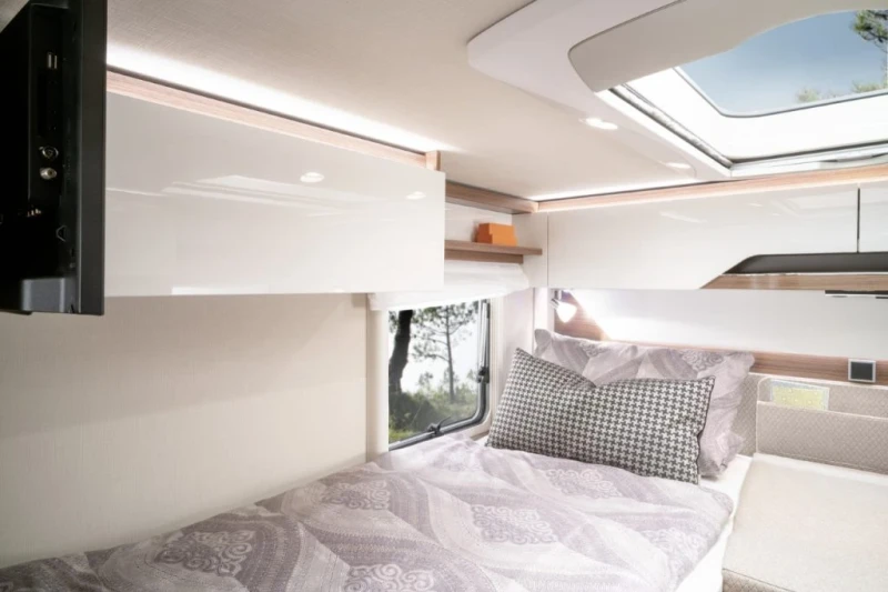 The 580 integrated model is among the shortest and most agile in its range. At a shade under 7m, it features rear single beds over a huge garage, with a further drop-down bed over the cab. The elegant, L-shape lounge is complemented by chic, ambient lighting and high-quality cabinetry. And, whatever your desires, you can choose from a wealth of exclusive optional extras.