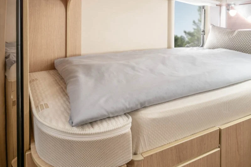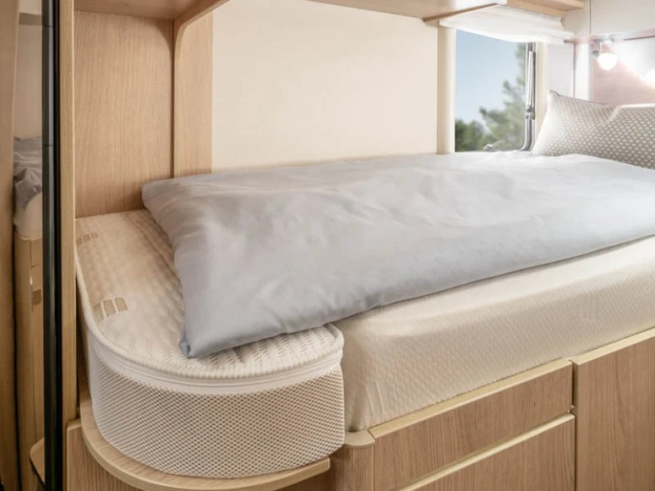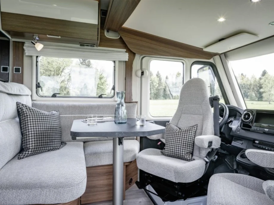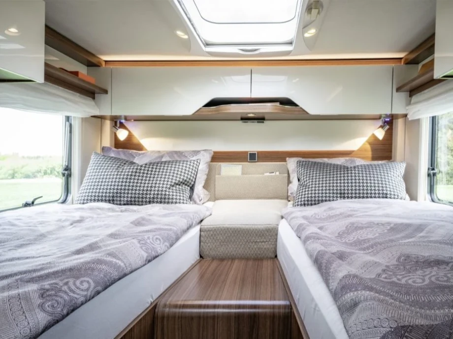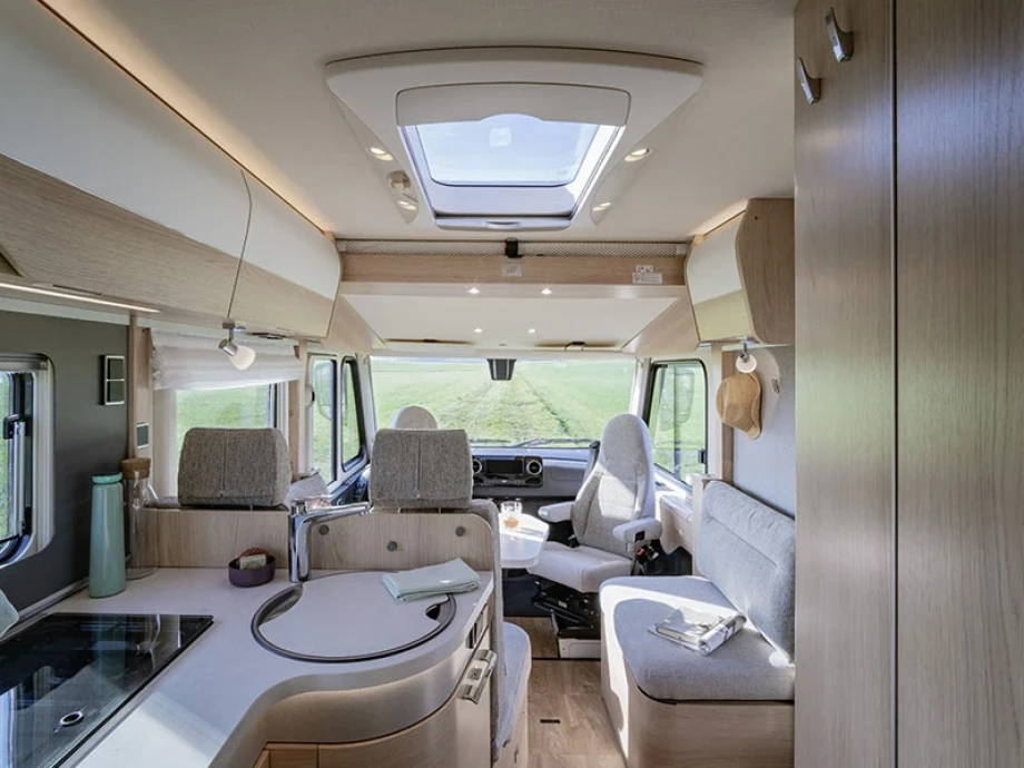 The smart interior design incorporates rear single beds, a large rear garage and spacious L-shaped lounge configuration. Extra optional features include Mercedes MBUX multimedia system, Iridium metallic silver cab and Caprice UK gas oven. The multi-purpose double floor is a stand-out feature of the range, giving you amazing storage space options and superb insulation levels.