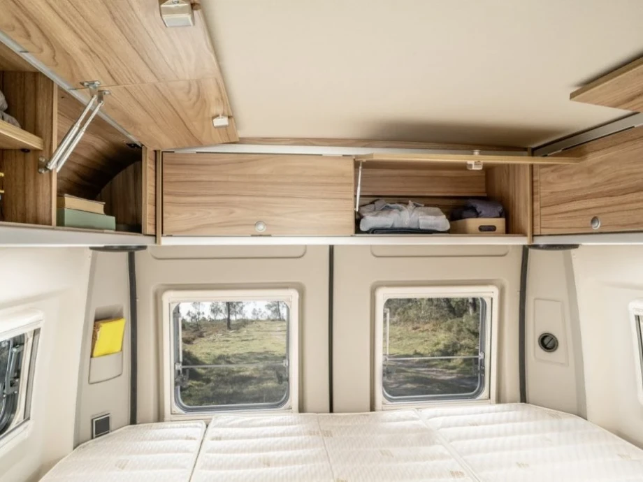 Elevating pop-top roof; swivel cab seats; cab air conditioning; cab blinds; electric mirrors; electric windows.