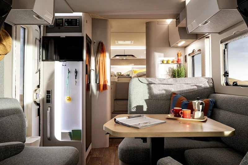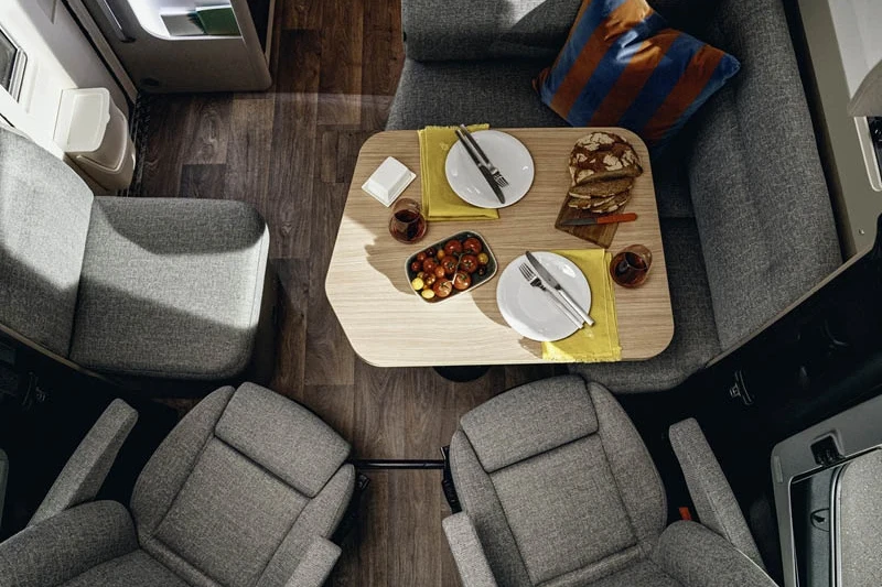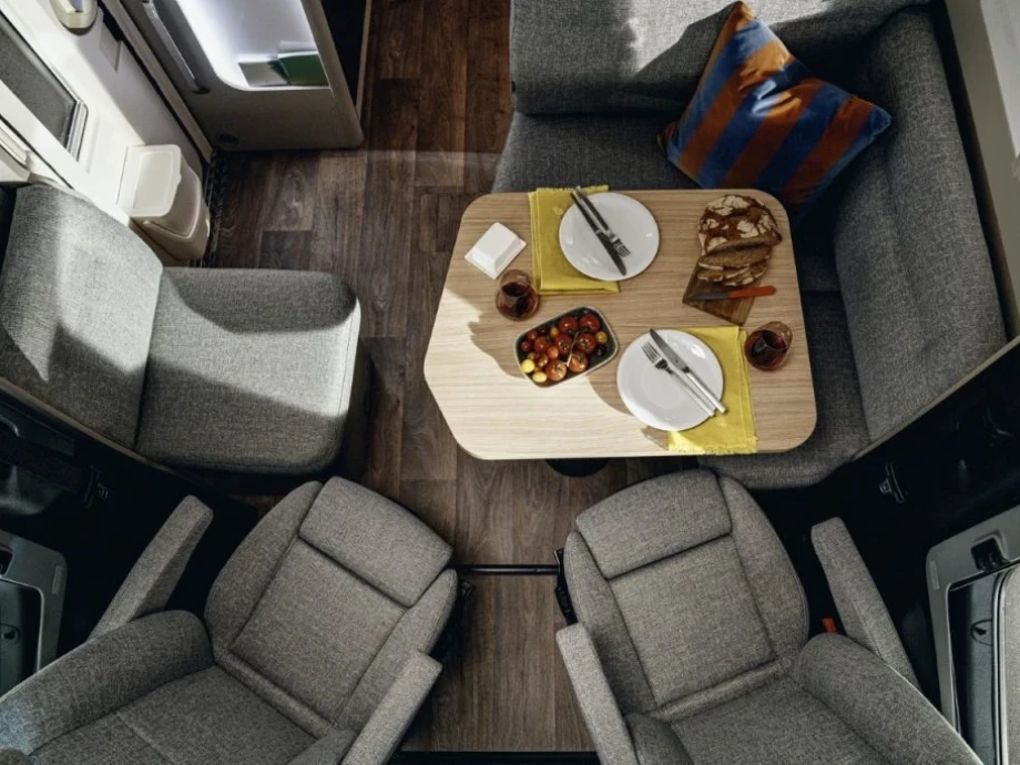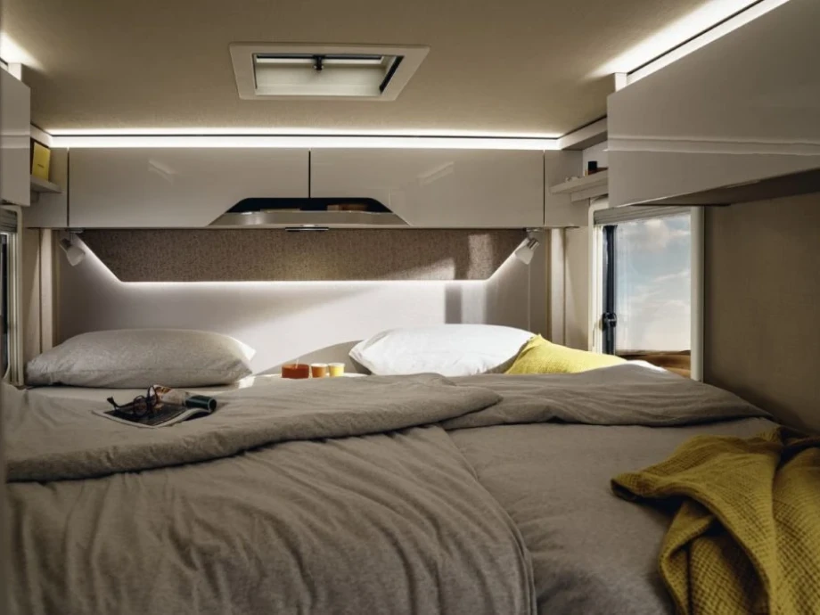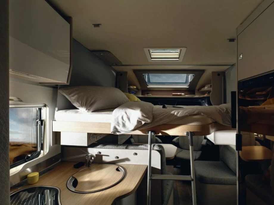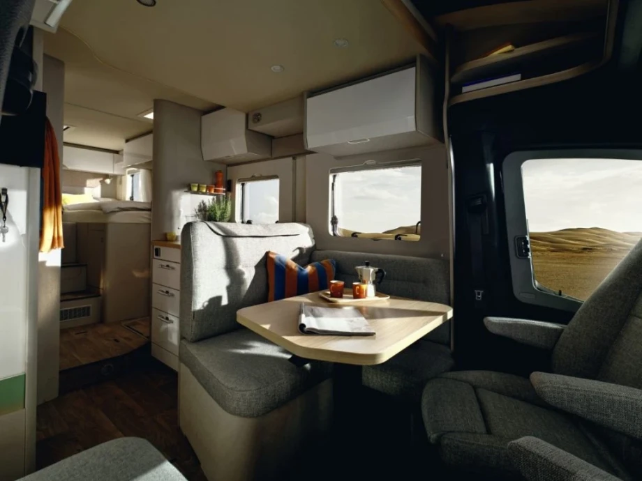 If you value a little extra space on your travels of discovery, you will surely love the ingenious design of the T-Class S 680. The rear single bed layout not only provides huge exterior garage room but amazing interior storage solutions. The generous body width of these models, combined with advanced ergonomics, makes travelling an unbridled pleasure.
