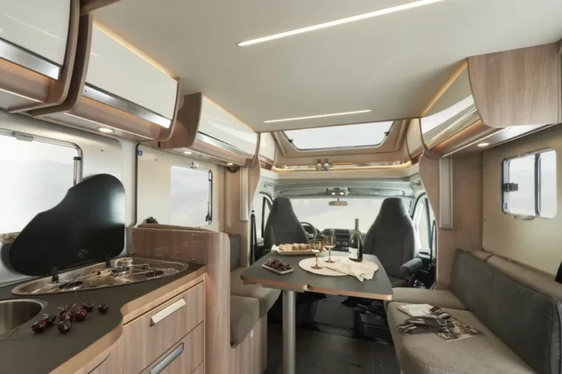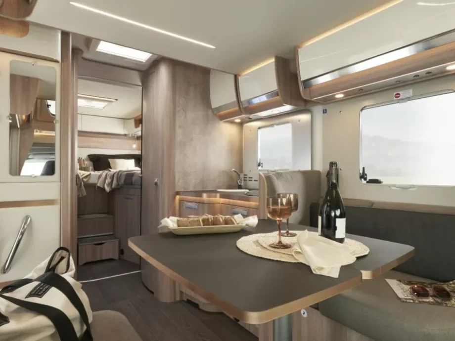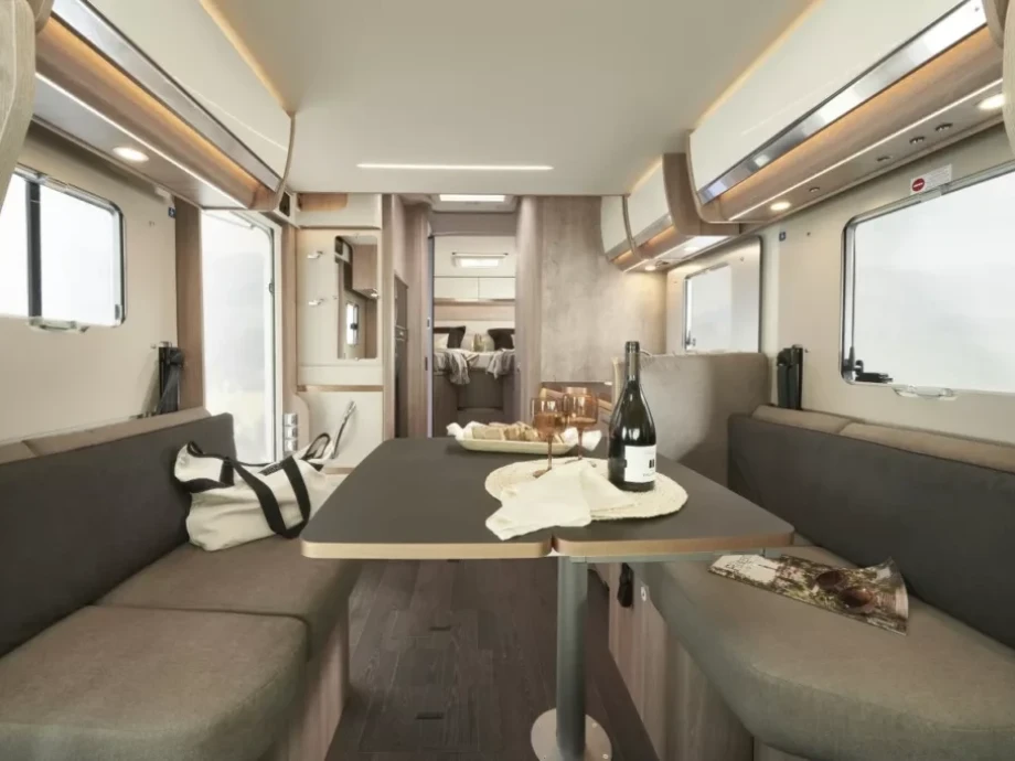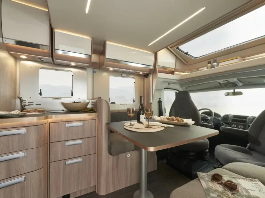 Every single aspect of your holiday has been thought out and perfected on this model with Italian-borne passion and know-how. The driver has fingertip control over their environment, while the wonderfully spacious interior caters for everybody’s requirements: from the classy bathroom and shower area to the remarkable kitchen, with oven, three-burner hob and large worktop, not to mention the dreamy pull-down extra bed