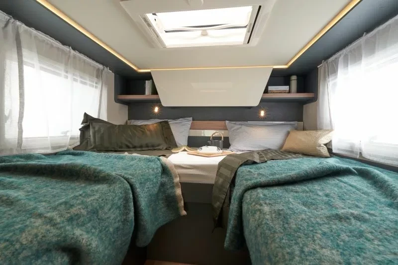 On-board entertainment includes a TV compartment for LCD/ LED screens up to 32″.
