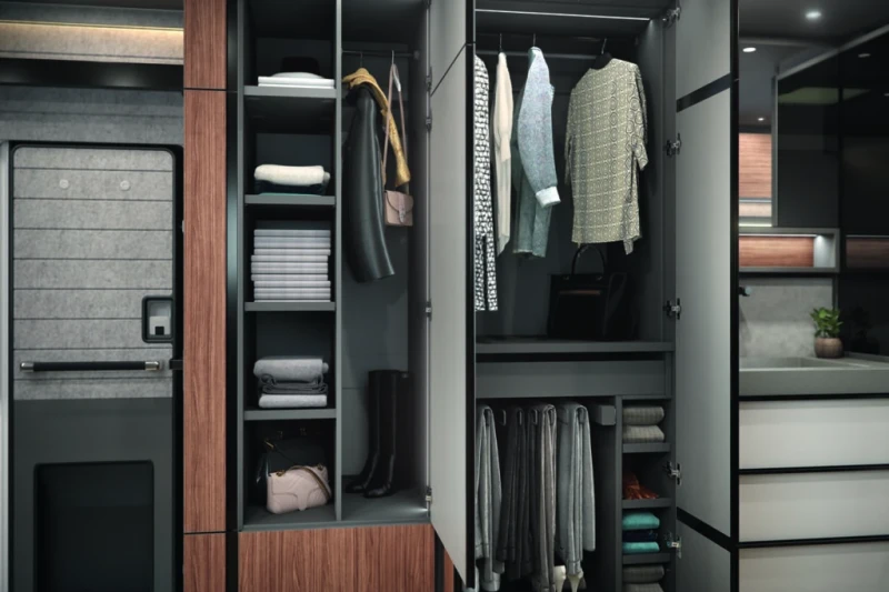 The new double floor hides away all the important tanks and smart technology elements, including the powerful lithium batteries and pressure water system, which is also available with a UV water filter system for maximum self-sufficiency.